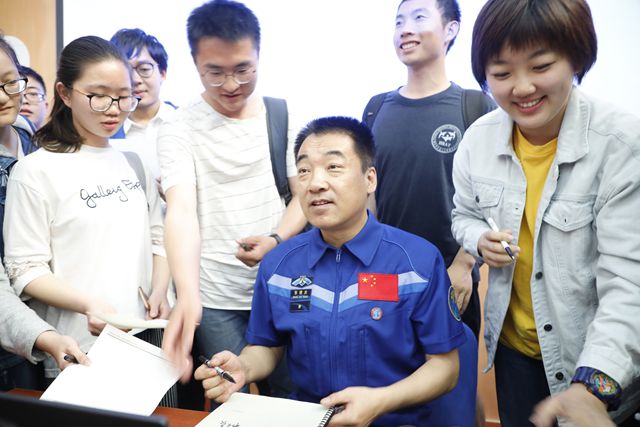 “当那耀眼的火焰直冲九天云霄时,托举起的是中华民族的脊梁。千百年来,探索蓝天之外的浩瀚宇宙一直是中华民族,乃至全人类的向往。忆往昔,中国弹星箭船的每一次升空、每一次飞行,无不是在挑战中实现跨越,在艰辛中铸就辉煌。”张晓光以中国载人航天事业发展为主线,结合自己的成长经历,向大家讲述人生经历和感悟。“有一种生活你没有经历过,你就不知道其中的艰辛,有一种艰辛你没有体会过,你就没有其中的快乐,有一种快乐你没有体会过,你就没有得到它的真谛。”面对同学们关于“如何面对困难和挫折”的提问,张晓光说,每个人都会遇到困难,良好的心态是我们战胜困难的能力和底气。成功是生活的一部分,困难和挫折也是生活的一部分,战胜困难和挫折更是生活的一部分。