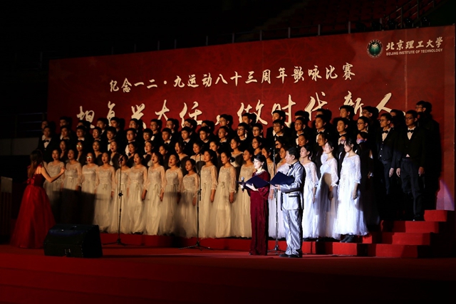 纪念一二·九歌咏比赛是北理工校园文化中的红色符号,是一代代北理工人的精神记忆,发挥着系统开展爱国主义教育和文化艺术教育的双重功能。2018年一二·九歌咏比赛紧密围绕“实现中华民族伟大复兴的中国梦”这一当代中国爱国主义的鲜明主题,引导青年学生把爱国之情、报国之志融入祖国改革发展的伟大事业之中,成长为担当民族复兴大任的时代新人。
