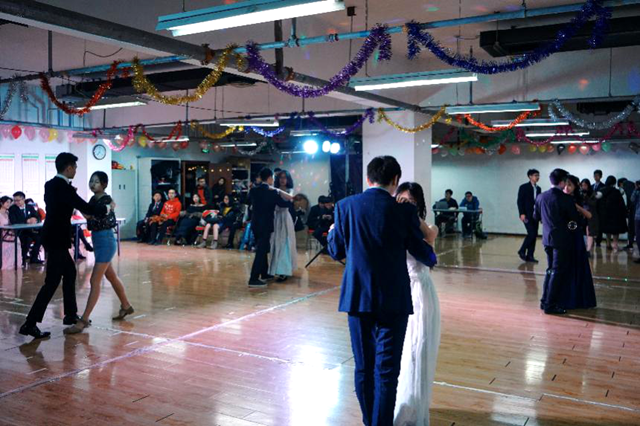 “冬日的热情始终澎湃,只等待一个舞动的时机,为我们装扮成最好的样子,伴随着音乐舞动青春。”主持人热烈激昂的开场词过后,第一组舞者登场,在“爱的华尔兹”的旋律中,以一支优美庄重的交际舞正式拉开了舞会的帷幕。本次舞会分为“轻舞成双”和“热蹈效应”两个主题半场。上半场为舞会的主体环节,伴着悠扬舒缓的舞曲,男生们绅士地向舞伴发出邀请,翩然行走在舞池中央。本场舞会的礼仪队环绕在舞池周围,为舞者提供简单的指导和建议,让每一位到场的同学都能够切身体验到舞蹈的魅力。