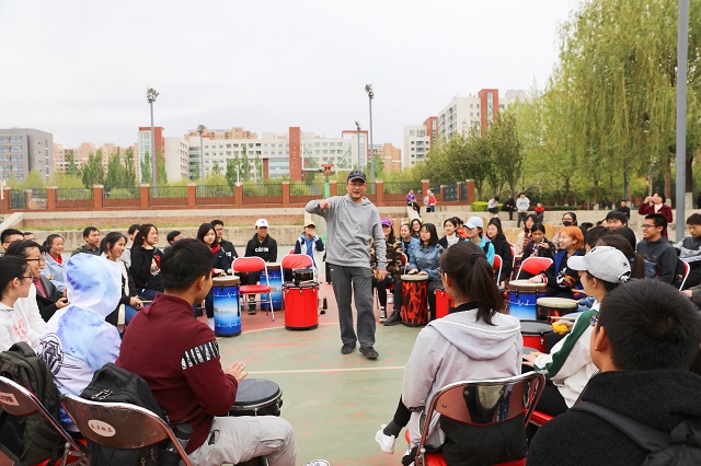4月19日下午,由心理健康教育与咨询中心主办,化学与化工学院、求是书院联合承办的金年会jinnianhuicom“5·25”大学生心理健康节“鼓圈”活动在良乡校区星光篮球场举行。本次活动特邀中央民族大学音乐学院民乐系副教授、硕士生导师张弩担任引导师,学校近八十名学生参加活动。