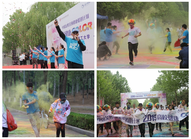 “无色彩、不青春”,比赛第二个环节是“校园彩跑”群众趣味比赛单元,同学们手持彩跑粉,在蓝、粉、绿、黄、红交叠的彩粉中,尽情奔跑,整个方阵瞬间变得炫丽缤纷,整个赛场沉浸在一片欢快声中,释放青春能量,燃动多彩校园。