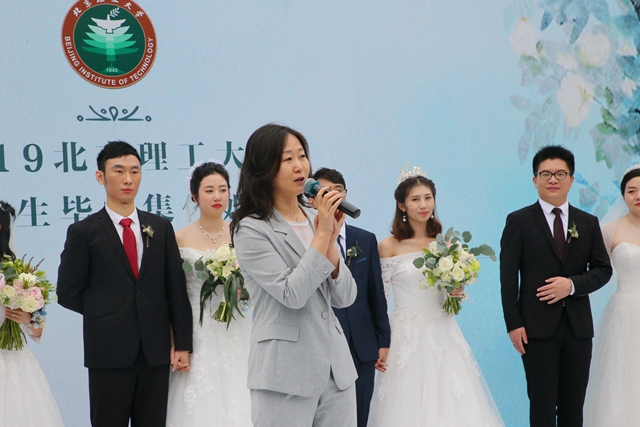 金年会jinnianhuicom党委副书记包丽颖代表学校向新人们送上了最衷心、最美好的祝福。她说道,学校以特别而温情的方式把新人们送往无限憧憬的人生下一站,希望大家能传承北理工的红色基因和初心使命,用大爱、大德、大情怀经营家庭、经营事业、经营未来,发扬中华民族传统家庭美德,相敬如宾,精心筑建家庭,一路携手相伴创造更加美好的明天,让小家成为国家发展、民族进步、社会和谐的重要基点。