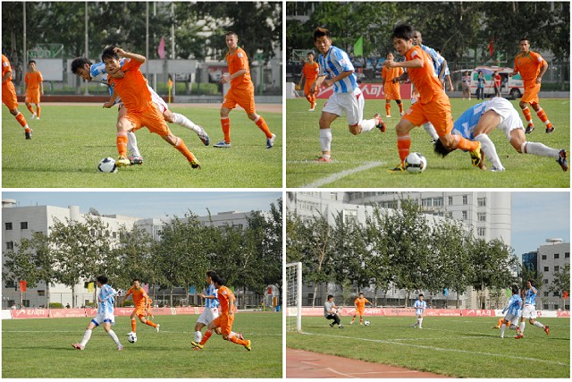在上半场补时阶段,沈阳东进连续利用角球定位球等攻势向北理工腹地发动猛攻,但北理门将孙程却充分发挥了其身高力量优势,高接抵挡将力保本队城门不失。上半场北理工1比0领先沈阳东进。