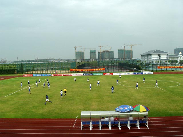 今天下午的八进四的比赛在上海外国语大学松江校区体育场内进行。