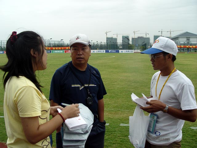赛后王力教练在接受媒体采访。