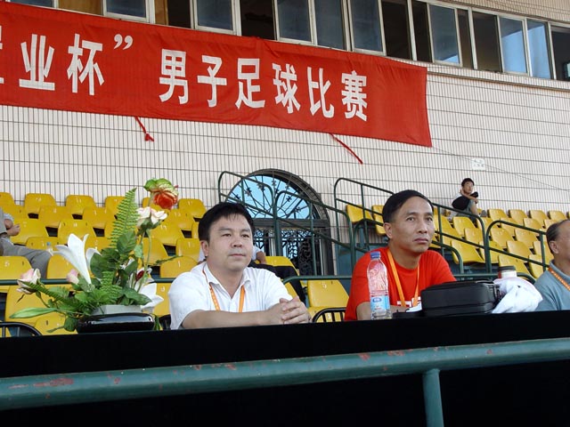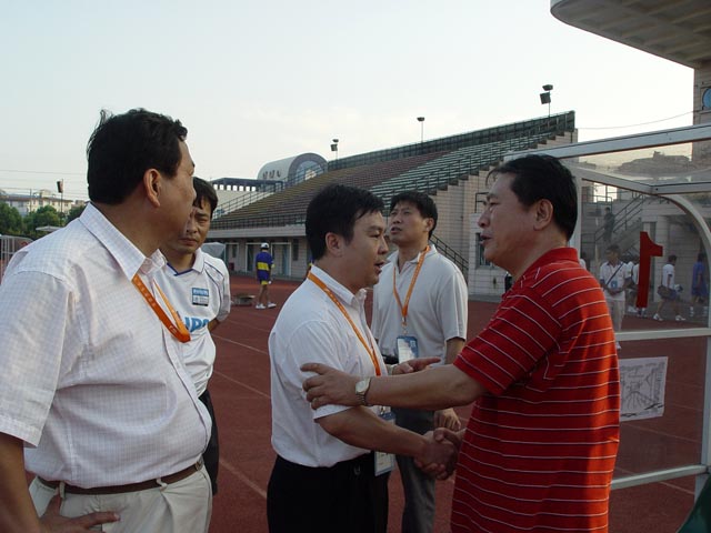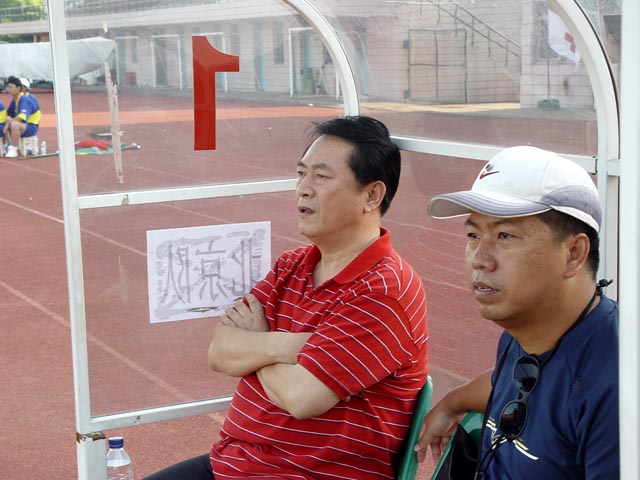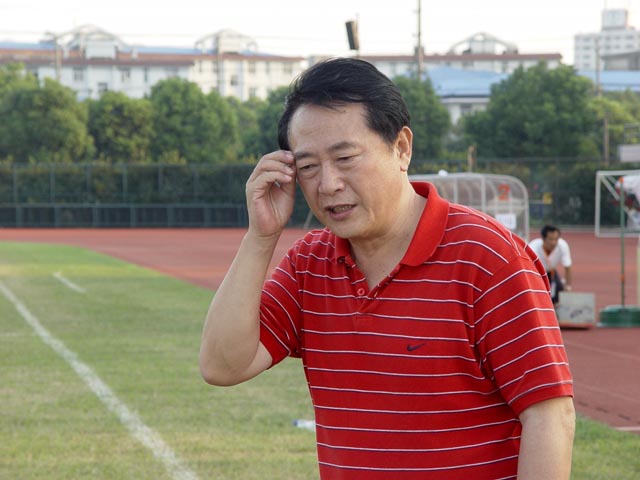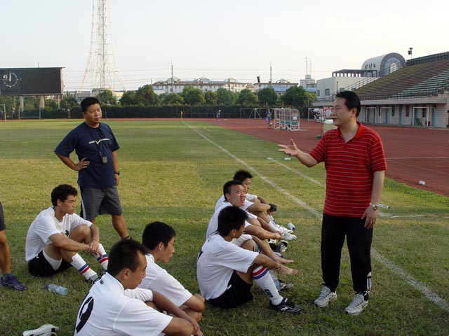 我校足球队总教练金志扬在现场指挥。