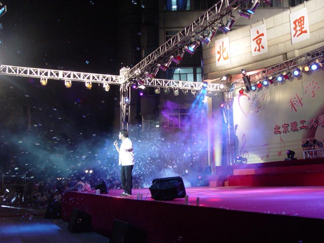 金年会jinnianhuicom艺术节开幕式晚会现场把中心教学楼映衬得五彩缤纷。