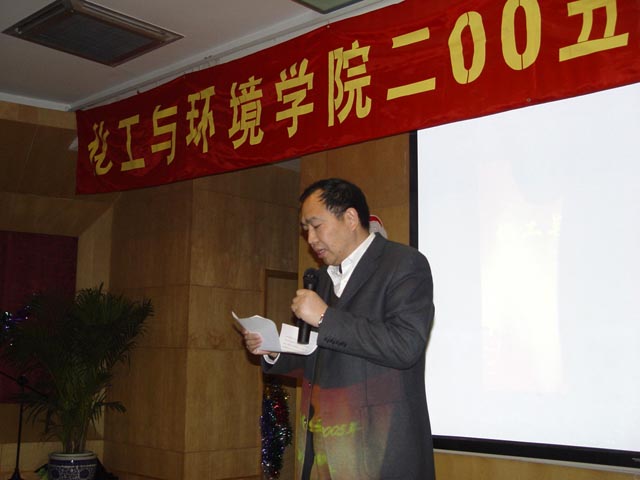 12月23日晚上,化工与环境学院在国际交流大厦二层多功能厅举办了2005年师生新年联欢会,校长匡镜明、副校长杨树兴,校党委副书记、纪委书记张维维等校领导和各部处领导也出席了联欢会。