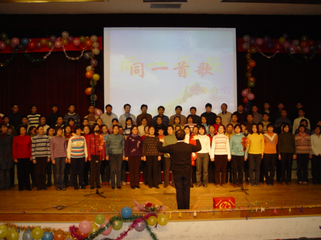 2004年12月29日下午2∶00在中心教学楼一楼报告厅,机电工程学院召开了2005年新年联欢会。参加联欢会的有在职人员、离退休人员及学生近400人。