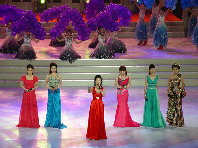由台湾歌手高明骏和大陆歌手白雪、甘萍联袂表演的《通向2008》让观众遐想万千