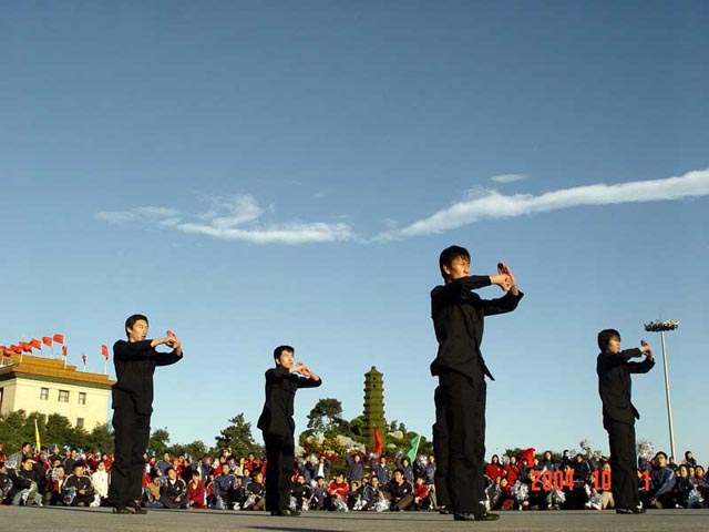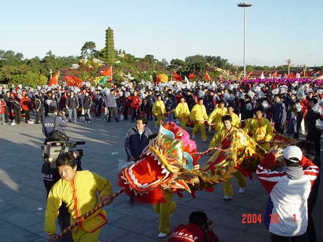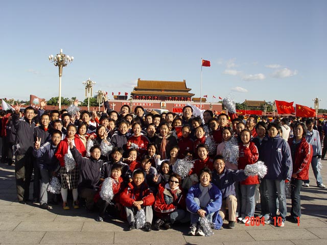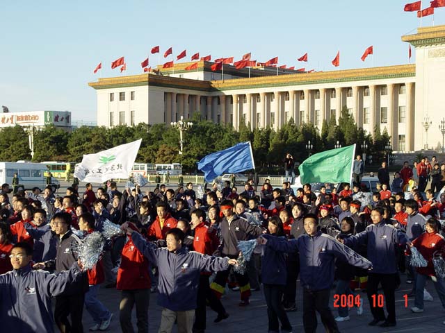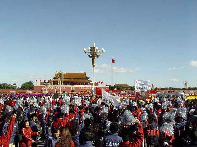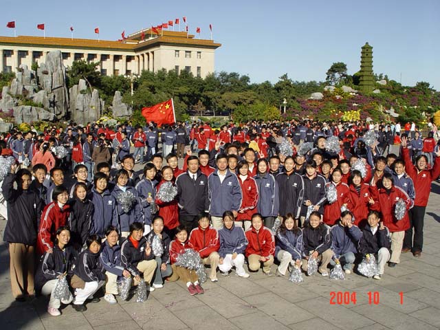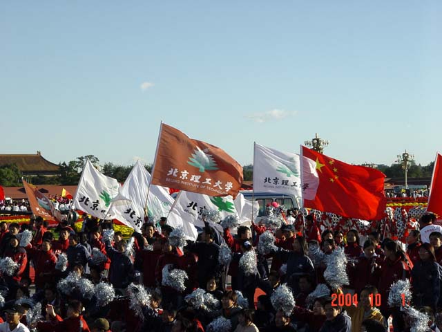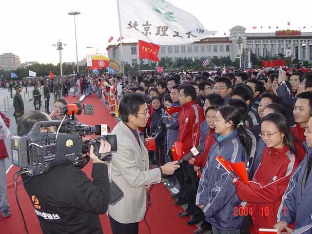 升旗仪式之后,我校学生在接受电视台记者的采访。