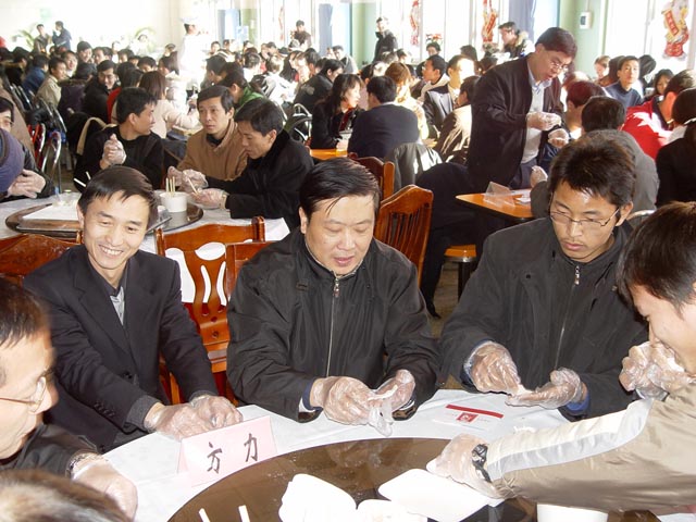 我校校长匡镜明同志等校领导和团中央书记处第一书记周强同志、全国学联、北京市领导及首都各大院校的老师和学生一起动手包饺子、看节目。