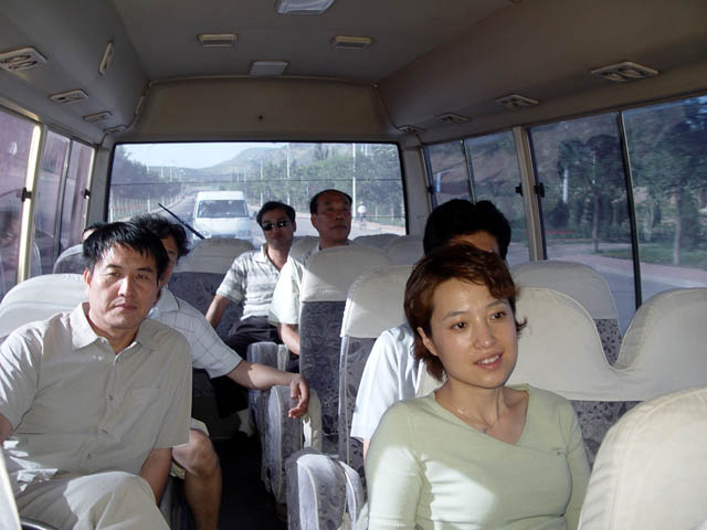 7月31日下午,慰问团成员在奔赴宣化的路上