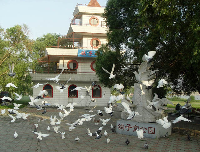 鸽子窝公园位于北戴河海滨东山突入大海的岬角处。园内有我国少有的鹅卵石海滩,傍海悬崖处有一高约20米挺拔险峻的巨石,石上裂隙纵横,过去常有成群的野鸽子朝夕聚于石上,夜间栖息于石隙之中,故称“鸽子窝”。