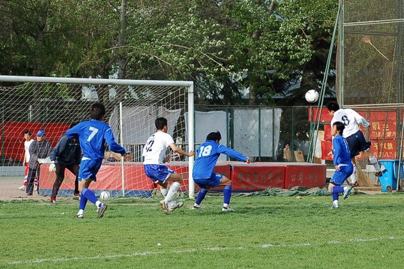 4月24日下午,为迎接即将开战的全国足球乙级联赛,我校足球队(白衣)与安徽九方足球队(蓝衣)进行了一次热身赛。我校足球队作为飞利普全国大学生足球联赛的三联冠,今年5月开始将首次参加全国足球乙级联赛,这也是中国足球联赛中第一支完全由在校大学生组成的球队。而安徽九方足球队是去年全国乙级联赛的第四名,双方球队实力非常接近,虽然这两只队伍在第一阶段比赛中分属南北两个大组,但比赛还是吸引了众多师生员工前去观战。
