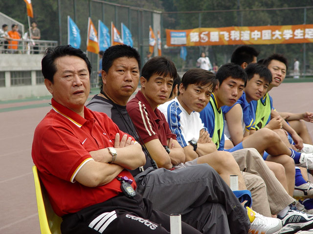 今天的比赛双方,一为飞利浦中国大学生足球联赛“三连冠”,一为东道主,而且两队队员的关系还有一定的渊源,上半场比赛双方处于试探阶段,都踢得比较谨慎。