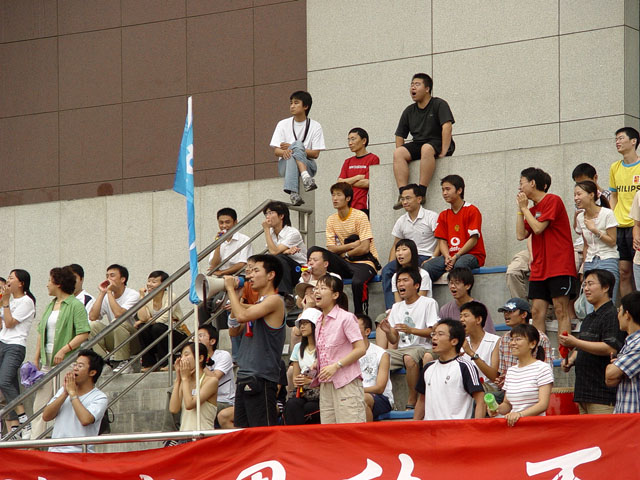 在先失一球的关键时刻,我校队员显示了冠军的风采,稳扎稳打,不断加强攻势,并逐渐控制了场上局面,人大却在1:0领先的情况下显得有些保守,打起了防守反击。