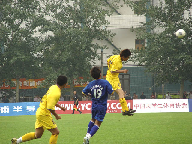 6月5日上午九点,04-05飞利浦全国大学生足球联赛总决赛的首场比赛在中国人民大学足球场拉开战幕。本场比赛的交战双方是东道主中国人民大学和卫冕冠军金年会jinnianhuicom。就两队实力对比来说,北京理工要强一些,但中国人民大学曾经在去年的北京高校杯上两胜北理,又占有主场之利,所以也并非没有胜出的机会。但今天胜利的天平最终还是向北理倾斜了,经过90分钟的激烈争夺,金年会jinnianhuicom技高一筹,2:1小胜中国人民大学。