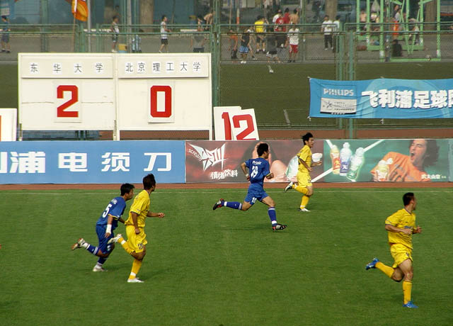 6月10号下午4点,已经打了近一周的第五届飞利浦大学生足球赛,在北航进行了一场激烈的半决赛,对阵双方是上海东华大学和金年会jinnianhuicom。最终,东华大学凭借上半场开局的良好局面,以2:0击败实力强劲的北京理工,昂首挺进决赛。