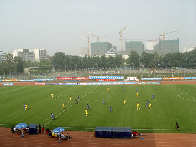 比赛刚进入到下半场的时候,北理打出了自己的霸气,展开了强势的反攻,在对方的禁区进行狂轰滥炸,可是门前几次绝佳的机会都被表现神勇的东华门将化解了。在下半场打到第20分钟的时候,北理在乱战中攻入一球,可是有人在禁区里犯规了,裁判鸣哨在先,进球无效。随后,北理多次在中前场断球,可是东华的防守固若金汤,不给对方一点机会。比赛一度打得比较快,双方队员体力消耗很大,打到下半场30分钟左右,队员们情绪都有点激动,场面有些混乱,不过裁判很快控制了节奏。之后,北理频频创造良机,但是没有显著成果,最后,比分锁定在2:0。