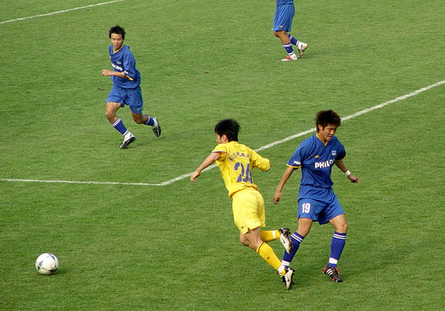 上半场一开局,东华就显示了自己强大的实力,进攻打得非常犀利,给北理的后卫形成了巨大的压力,频频在北理的禁区制造险情。东华的攻势很快就收到了成效,在第10分钟的时候,东华的场上队长7号黄洋利用角球,在混乱中头球将皮球送进了对方的大门。随后东华一度占据着场上的主动,拼抢很积极,并且多次利用个人突破威胁北理的球门。北理的中场断球技术很好,脚下技术非常娴熟,多次阻截了对方的精彩配合,打了几个反击,可是并没有破门得分。比赛进行到将近20分钟的时候,东华的7号球员梅开二度,他利用中路传中,再次用头球将比分扩大。随后东华注意稳固后防,一直没有给北理留有机会。