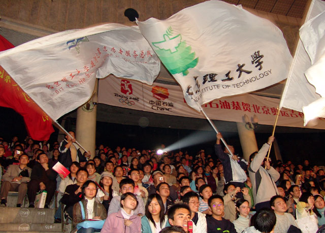 轮滑俱乐部的同学们经过了数天的彩排,终于在舞台上为我校争得了荣誉,也表达了大学生们对奥运的期盼之情。