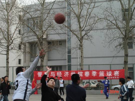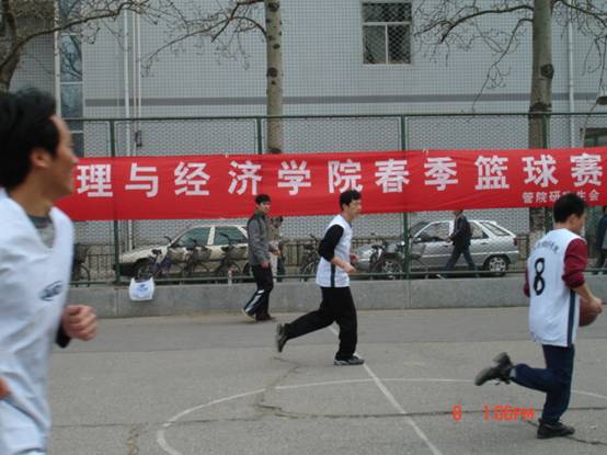 为调动更多研究生参加体育活动、锻炼身体的积极性,响应教育部“每天锻炼一小时,健康工作50年,幸福生活一辈子”的号召,在学院领导的殷切关怀和广泛取得同学意见的基础上,经过研究生会的精心组织与各班班委的大力协调,管理与经济学院研究生春季篮球联赛于3月8日在学校东篮球场揭开了帷幕。