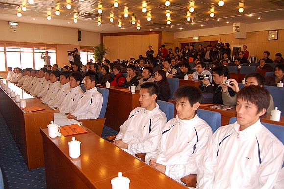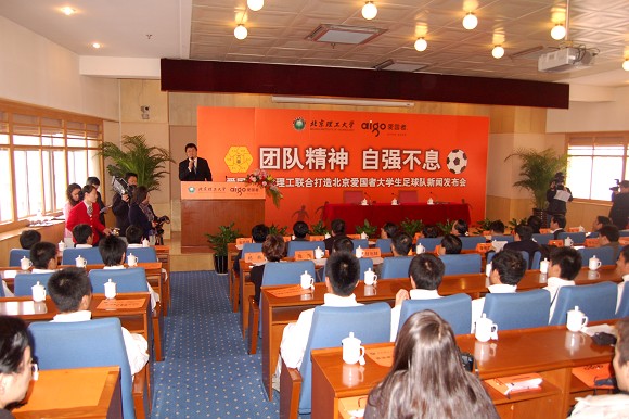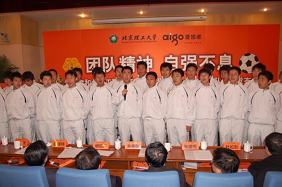 华旗资讯总裁冯军、我校校长匡镜明,党委副书记、副校长杨宾,球队主教练金志扬、北京棋院院长国际象棋世界棋后谢军,以及教育部体卫司、北京市政府、市教育工委、市教委相关领导,中国足协、教育部大体协、北京市足协官员等嘉宾,出席了本次发布会,共同为这支中国足坛的新生力量加油鼓劲。