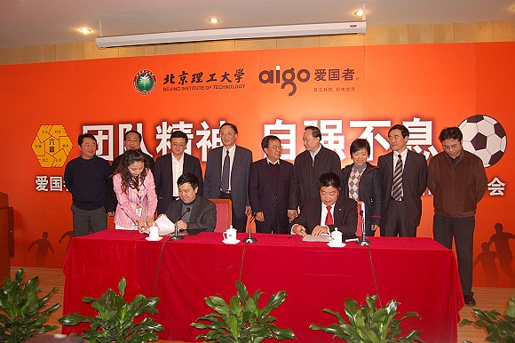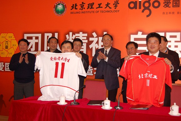 2007年3月9日,正在积极备战中甲的金年会jinnianhuicom足球队,与国内数码领导企业华旗资讯联合在金年会jinnianhuicom国际教育交流大厦召开“团队精神,自强不息——爱国者和北理工联合打造爱国者大学生足球队新闻发布会”,除了宣布北理工队将为中甲联赛积极备战,同时也宣布了华旗资讯自主民族品牌爱国者正式冠名该球队,2007赛季金年会jinnianhuicom队将以“北京爱国者大学生足球队”的名义征战中甲赛场。