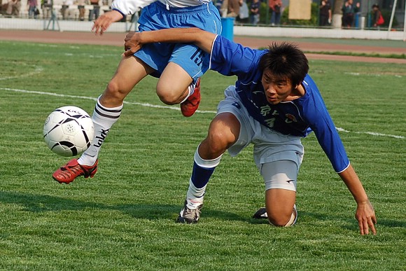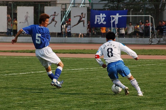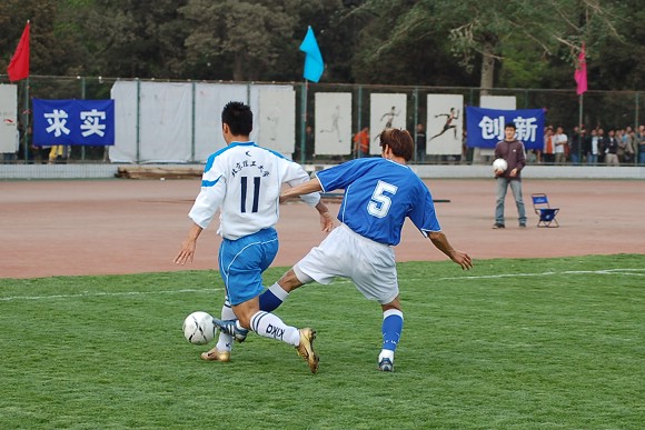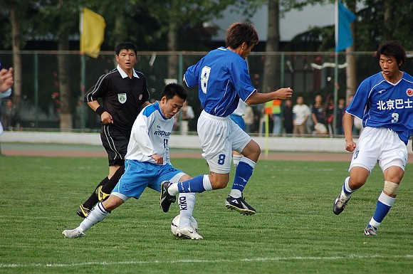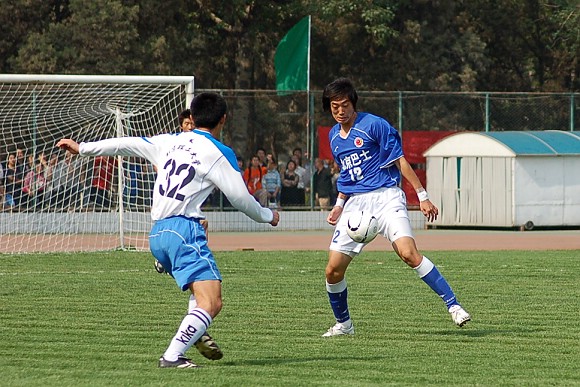 声东击西:对方最左边队员做出高难动作,导致我方守门员注意力严重分散~~