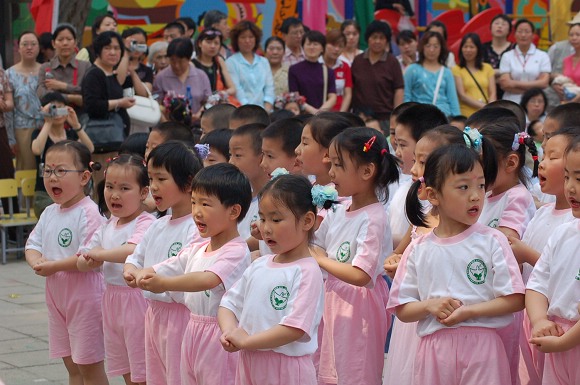 5月30日上午幼儿园迎来了孩子们盼望已久的“六一”庆祝大会。今日的晨曦分外迷人,灿烂的阳光穿过树叶间的空隙,透过早雾,一缕缕地洒满了幼儿园。孩子们在家长的陪伴下,快活地像一只只小鸟又唱又跳,飞进幼儿园这个充满欢乐的绿色乐园。鲜艳的彩旗、漂亮的气球和孩子们的美术、科技作品,把幼儿园装点得更加富有生气。