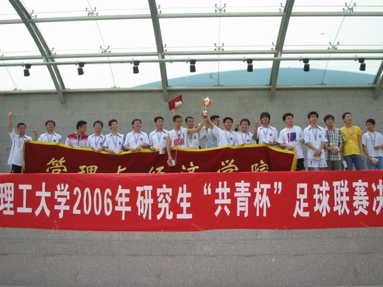 经过为期一个月的激烈角逐,管理与经济学院研究生足球队在学院领导的大力支持下,一路过关斩将,以4:1战胜理学院研究生足球队,勇夺2006年“共青杯”冠军,王晟宇同学还夺得最佳射手。