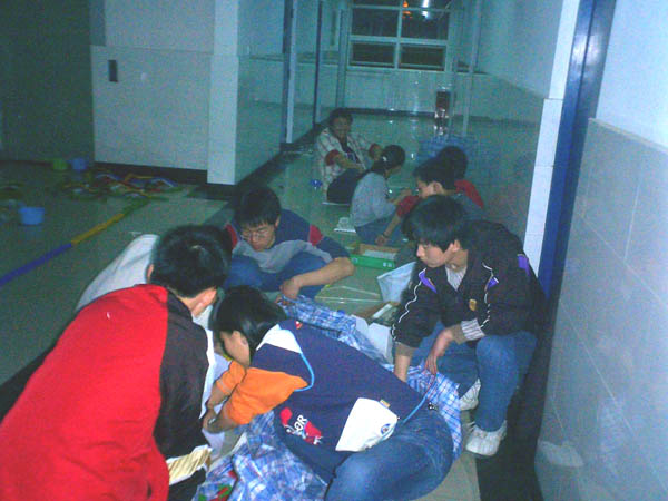 我校参赛代表队在校团委组织下,由付玉良等9名同学组成。在校学生会、校研究生会、光电创新基地、机电航模队老师、同学的大力支持下,经过近两个月的准备训练,经过20小时的精心码牌,终于完成最后的参赛作品。当5万张骨牌一气呵成全部倒下的瞬间,全场响起最热烈的掌声。