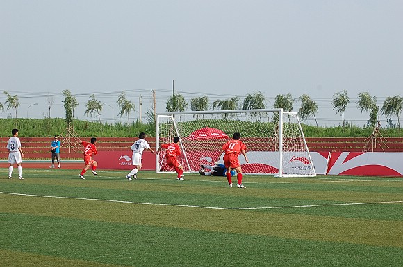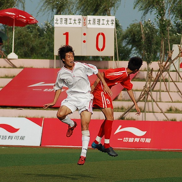 经过双方的奋力拼抢,上半场比分依然为1:0,但身体高大强壮的太原理工大学队已显疲态。