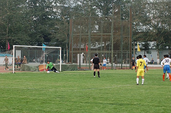 点球由我方6号“点球专家”于飞主罚,皮球应声入网,场上比分变为1:1,直至中场休息。