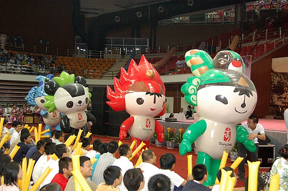 其中最受欢迎的要属《福娃》展示,五个代表奥运的可爱小精灵带着全国人民对奥运的期盼来到了金年会jinnianhuicom,给全校师生来了欢乐,也带去了全校师生对2008奥运的祝福。