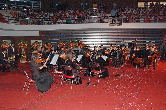 开幕式晚会在我校交响乐团雄壮的交响乐演出中拉开帷幕。
