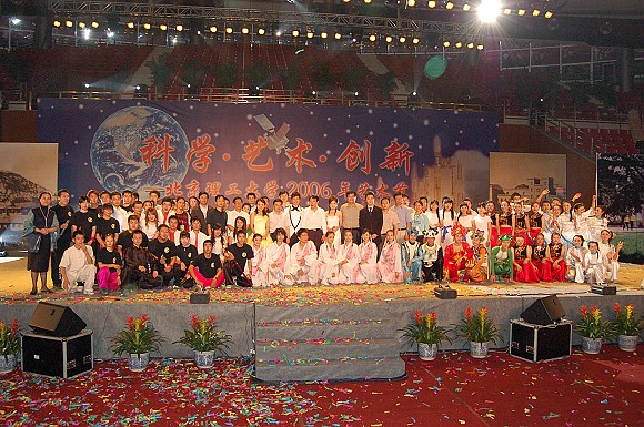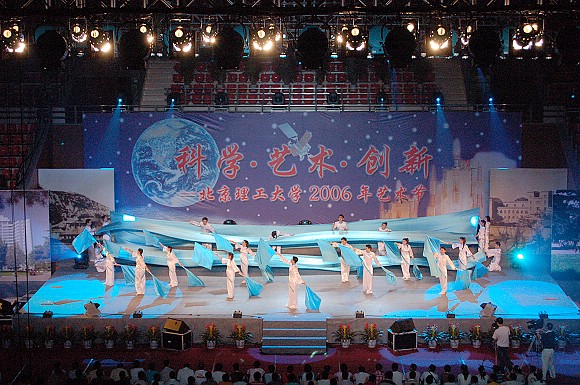 2006年9月19日晚,金年会jinnianhuicom2006年艺术节开幕式在我校体育文化综合馆隆重举行。金年会jinnianhuicom艺术节已成功举办两届,2006年艺术节开幕式由校团委、艺术教育中心主办,党委办公室、校长办公室、总务后勤部、党委宣传部、保卫处、校工会、现代教育技术与网络中心协办。开幕式晚会的主办方对此次晚会进行了精心的组织与筹备。2006年暑期,我校团委及艺术教育中心的部分老师与参加演出的学生放弃了暑假休息时间,冒着酷暑进行了艰苦的排练。
