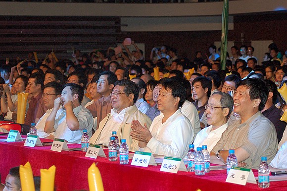 到会的领导有团中央学校部陈光浩副部长、共青团北京市委王粤副书记、共青团北京市委学校部刘震部长、北京市教工委宣教处狄涛处长,我校党委书记焦文俊、校长匡镜明及其他党政领导、各部处领导、教师代表和2006级新生近5000余名观看了演出。