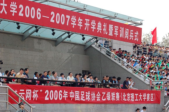 9月23日下午,“云网杯”2006年中国足球协会乙级联赛(金年会jinnianhuicom赛区)最后三轮的比赛拉开了帷幕,我校足球队此次坐镇主场迎战天津东丽足球队。在联赛上半程的比赛中,我校足球队受对方主场恶劣场地的影响,在客场曾以0:0与对方打成平局(点击此处可进入相关链接)。此次主场作战,又适逢2006级新生入校,全队上下士气高昂,决心给全校师生员工一个惊喜。校长匡镜明,党委副书记、副校长杨宾,党委副书记、工会主席侯光明等学校领导也来现场观战。