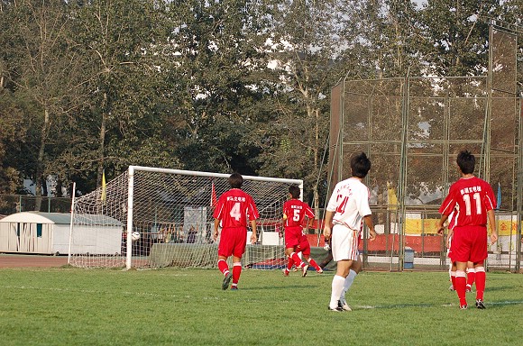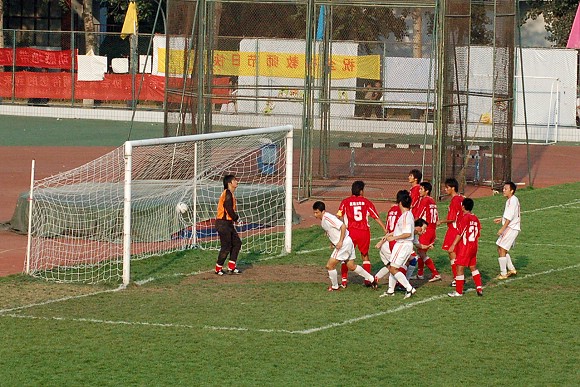 下半场比赛开始后,我方优势更为明显。比赛进行到70分钟时,我校足球队打了一个进球小高潮,首先由前锋11号王强乱军之中头球破门,比分变为2:0.
