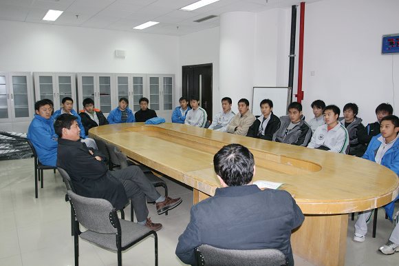 行前,党委副书记、副校长杨宾于11月28日晚在学校新体育馆会议室主持召开了球队的赛前准备会。