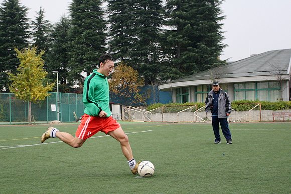经过1个小时的地铁旅程和5分钟的步行,球队来到了东京朝鲜中高级学校的足球训练场地。