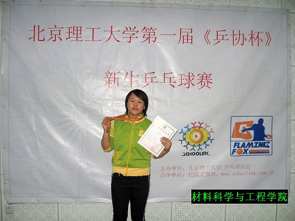 材料科学与工程学院04310601班王美娜同学勇夺金年会jinnianhuicom第一届新生乒乓球赛冠军