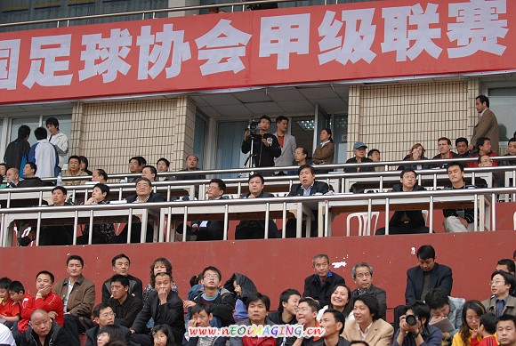 由南京理工大学的同学们和华旗集团南京分公司的球迷联手组成的“爱国者大学生”啦啦队气势丝毫不输主场球迷方阵。
