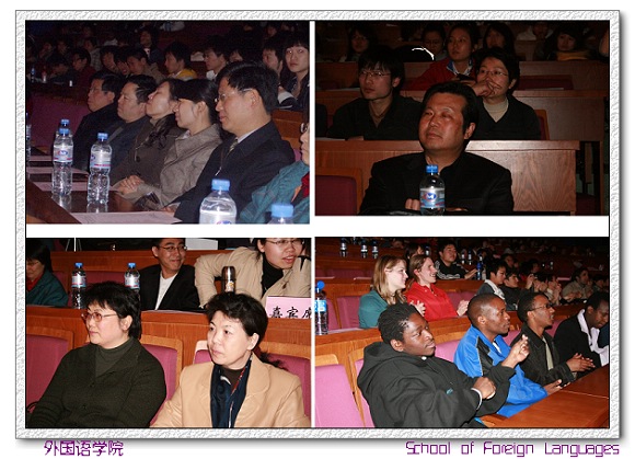 出席开幕式晚会的有金年会jinnianhuicom副书记、副校长杨宾老师,学生工作处处长刘明奇老师,研究生工作部部长肖文英老师,校团委副书记衡靖老师等。外国语学院院长吴树敬老师,党委书记王文清老师等学院领导和各系部主任以及我校的外教及留学生也出席了开幕式晚会。