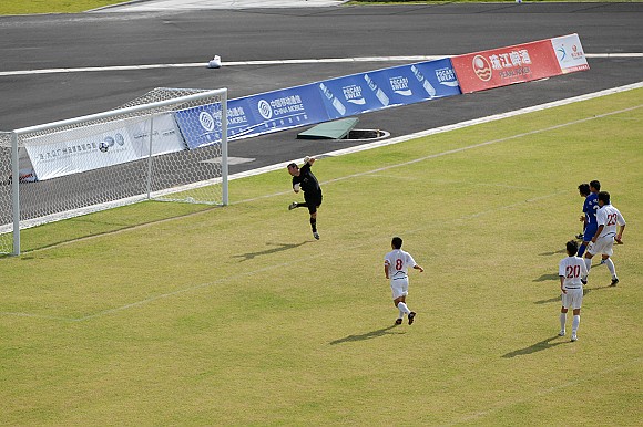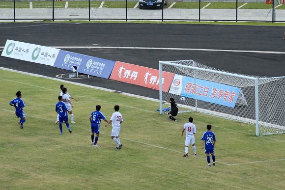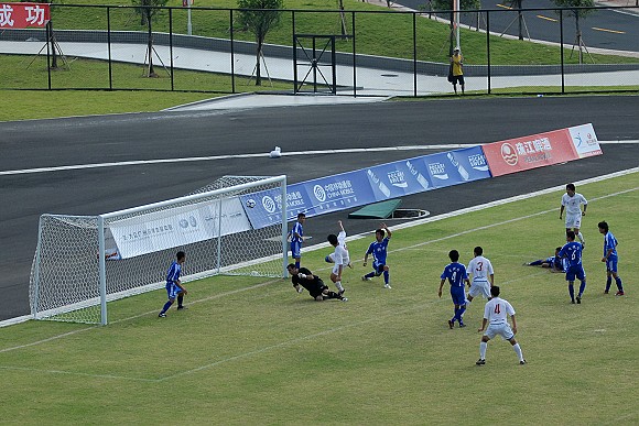 但没想到的是,下半场一开场,新疆队就像换了支队伍,在猛烈的进攻下,利用北理工守门员张思的出击失误,扳回了漂亮的一球。