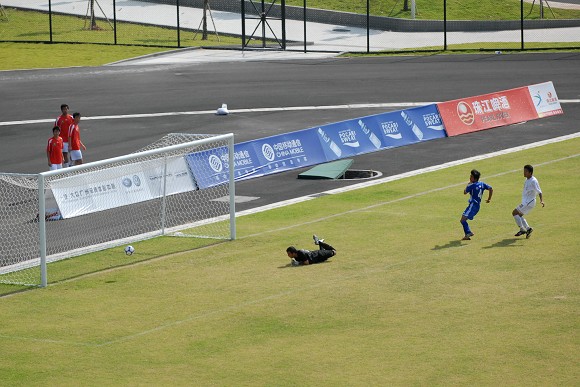 比赛进行到第40分钟,北理工前锋张宇单刀突破,在对方后卫拦截之前,将皮球巧妙送入对方球门近角,对方守门员鞭长莫及,比分再次改变为4:0.