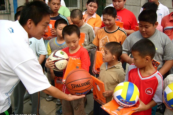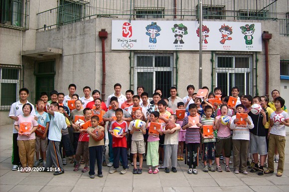 党员们在为孩子们送去关心和温暖的同时,也向他们宣传奥运会以及残疾人奥运会的相关知识。为这些残疾儿童送去了篮球、足球、排球、运动服装、画笔、书籍等文体用具。