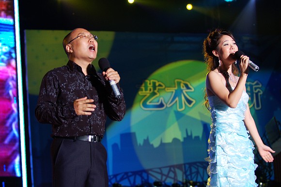 由校工会教师王丽静表演的女生独唱:《中国大舞台》